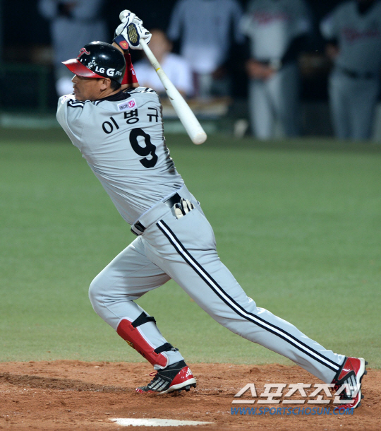 22일 대구 삼성전. 이병규는 또 한번 허슬 플레이를 펼쳤다. 3-0으로 앞선 3회 2사 2루에서 삼성 이승엽의 빨랫줄 같은 타구에 과감한 전진에 이어 몸을 던져 잡아냈다. "최악의 경우 놓쳐서 뒤로 빠뜨리는 한이 있어도 무조건 잡아야 한다고 생각했어요. 승부를 걸었는데 승엽이 타구가 생각보다 멀리 왔어요." 부정적 결과를 미리 상상하고 겁내기보다 부딪혀보는 용기. LG 선수단에 던지는 메시지가 숨어 있다. 공격에서도 이병규는 결정적 순간마다 3안타로 2타점을 기록했다.