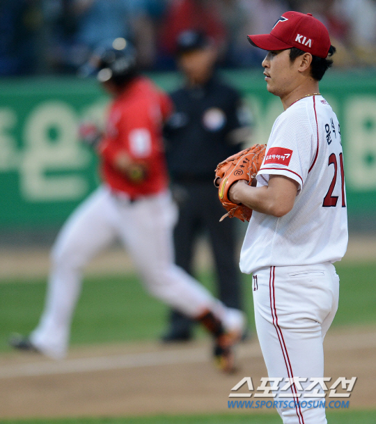 SK 와이번스와 KIA 타이거즈의 2013 프로야구 경기가 16일 광주구장에서 열렸다. 2회초 1사 SK 조성우에게 홈런을 허용하자 허탈해하고 있다. 광주=정재근기자 cjg@sportschosun.com/2013.05.16/