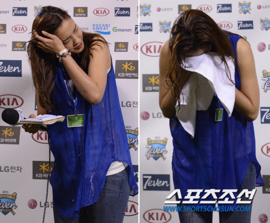 한편 정인영은 지난 26일 잠실야구장에서 열린 2013 프로야구 LG와 SK 와이번스의 경기가 끝난 뒤 짜릿한 끝내기 안타로 값진 승리를 만들어 MVP로 뽑힌 LG 정의윤을 인터뷰하다 몰래 난입한 임찬규에게 물벼락을 맞았다.
