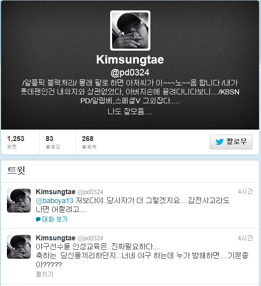 KBS N 스포츠 김성태 PD는 27일 자신의 트위터에 "야구선수들 인성교육이 진짜 필요하다. 축하는 당신들끼리하던지, 너네 야구 하는데 누가 방해하면 기분 좋으냐"고 비난했다.
