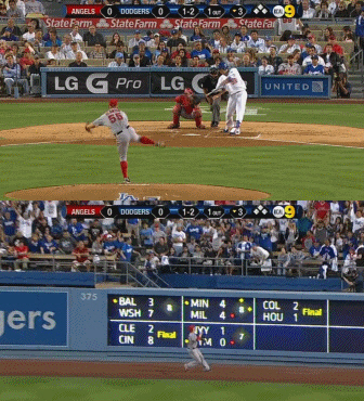 3회를 무실점으로 잘 막은 류현진은 3회말 1사 이후 첫 타석에서 블랜튼의 89마일짜리 4구를 받아쳐 우측 펜스를 원바운드로 맞히는 2루타로 연결했다.