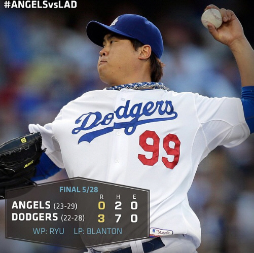 류현진은 29일(이하 한국시각) 미국 캘리포니아주 로스앤젤레스 다저스타디움에서 열린 메이저리그 LA 에인절스와 인터리그 홈경기에 선발 등판했다.