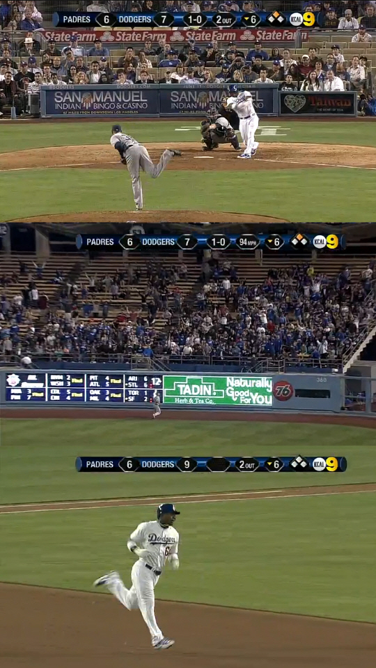 푸이그의 활약으로 다저스는 9대7 역전승을 거두고 2연승을 달렸다. <스포츠조선닷컴>