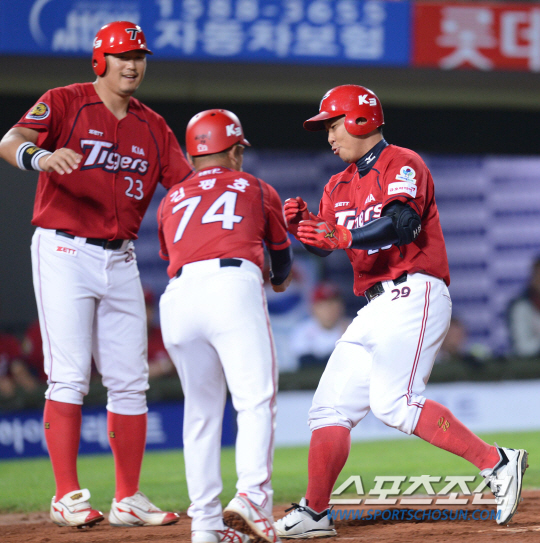 최희섭의 전력질주가 없었다면, 이범호의 홈런도 볼 수 없었다. 그 이전에 송구를 어렵게 만든 1루주자 나지완의 절묘한 슬라이딩도 있었다.