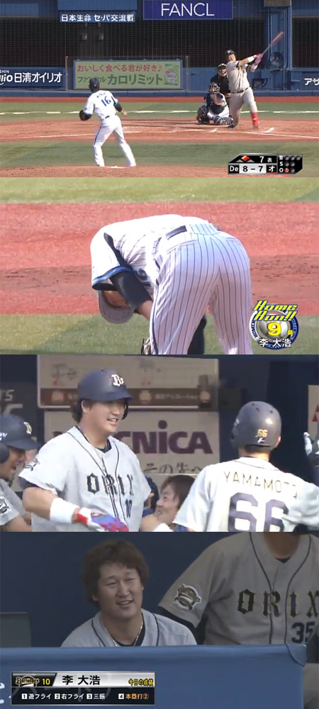 현재 8회말 오릭스는 이대호의 홈런에 힘입어 요코하마에 9-8로 앞서 있다. <스포츠조선닷컴>