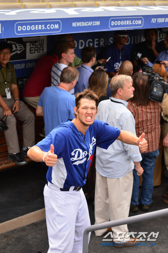 커쇼와의 대화가 끝날 즈음, 류현진도 투수조 타격훈련을 준비하러 자신의 라커로 다가왔다. 류현진은 커쇼와 손을 맞잡으며 반갑게 인사했다. 커쇼도 알 수 없는 한국말로 류현진에게 장난을 쳤다. 커쇼 말대로 다저스를 대표하는 두 좌완 에이스의 관계는 돈독해 보였다.