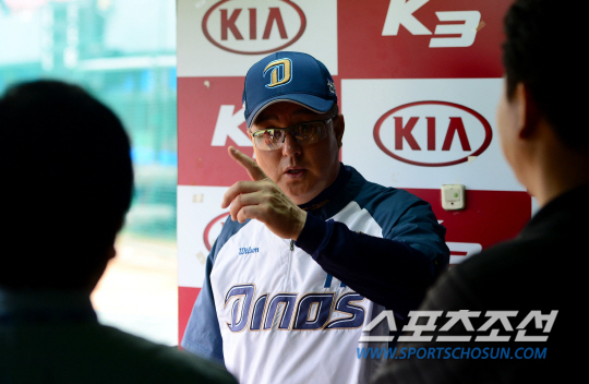 12일 광주 무등야구장에서 2013프로야구 KIA와 NC의 경기가 열렸다. 경기 전 NC 김경문 감독이 기자들과 대화를 나누고 있다. 광주=송정헌 기자 songs@sportschosun.com/2013.6.12