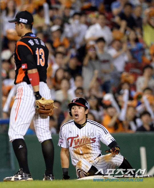 | 사진 : 6월 7일 잠실 롯데전에서 7회말 3루 도루를 시도하다 아웃된 LG 이대형 |