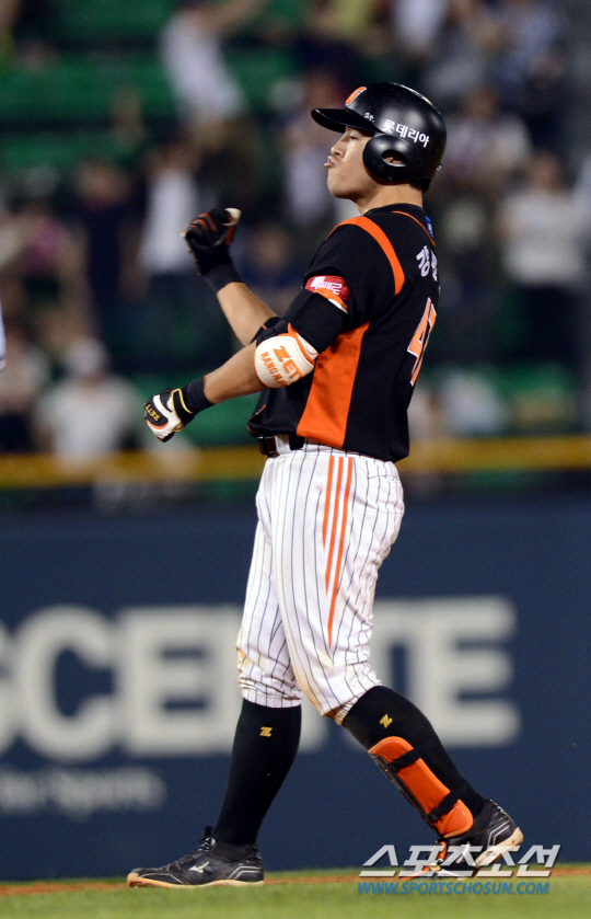 기선은 두산이 제압했다. 1회 1사 2루 상황에서 김현수의 깔끔한 중전 적시타가 나왔다. 롯데는 2, 4회에 찬스를 잡았지만, 두산 선발 유희관의 절묘한 두뇌피칭에 당하며 득점을 올리지 못했다. 1-0의 살얼음판 리드를 잡은 두산은 7회 귀중한 추가점을 올렸다. 선두타자 양의지의 2루타와 롯데 3루수 황재균의 수비실수로 만든 1사 2, 3루. 대타 오재일이 우측 펜스까지 가는 큼지막한 타구를 날리며 3루 주자 정수빈을 불러들였다. 여기에서 복잡한 의미가 깔려 있었다.