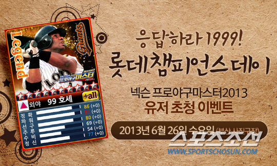 롯데는 이번 주초 부산 사직구장서 열리는 NC와의 3연전에서 '응답하라 1999 챔피언스데이'를 갖는다. 한국시리즈에 진출한 99년 롯데에서 활약한 선수들이 다시 모이는 행사로, 넥슨의 후원으로 역대 롯데 출신 최고의 용병으로 꼽혔던 펠릭스 호세까지 초청했다. 부산 야구팬은 물론 호세의 활약상을 기억하는 올드팬들에게 향수를 불러일으킬만한 참신한 이벤트라 할 수 있다. 또 1,3루 지정석과 외야 자유석이 1999원으로 통일돼 시즌 첫 만원관중을 기록할 것으로 보인다.