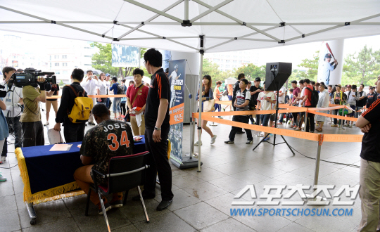 25일 부산 사직구장에서 열릴 예정이었던 2013 프로야구 롯데와 NC의 주중 3연전 첫번째 경기가 우천으로 취소되었다. '응답하라 1999'라는 테마로 열리는 '챔피언스 데이' 행사에 참석하기 위해 6년만에 한국을 찾은 호세가 팬들과 사인회를 갖고 있다. 부산=허상욱 기자 wook@sportschosun.com