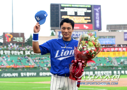 이승엽이 개인 통산 최다 352호 홈런을 날렸다. 삼성 이승엽은 20일 인천 문학야구장에서 열린 SK와 경기에서 3회 1사 1,3루에서 3점 홈런을 날리며 개인 통산 최다 홈런 352호 신기록을 달성 했다. 이닝을 마치고 축하 꽃다발을 건내 받은 이승엽이 포즈를 취하고 있다. 인천=송정헌 기자 songs@sportschosun.com/2013.6.20