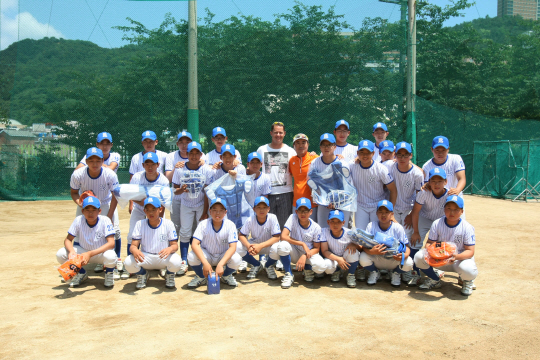롯데 자이언츠 선발 옥스프링이 29일 부산 개성중을 방문해 250만원 상당의 아마야구 용품을 전달하고 원포인트 레슨을 실시했다.