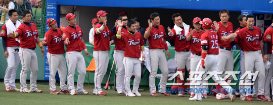 삼성과 KIA의 주말 3연전 마지막날 경기가 30일 대구 시민구장에서 열렸다. 2회초 KIA 이범호가 삼성 장원삼의 투구를 받아쳐 좌중월 동점 솔로홈런을 날렸다. 홈인하며 동료들과 기쁨을 나누는 이범호. 대구=허상욱 기자 wook@sportschosun.com