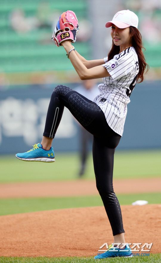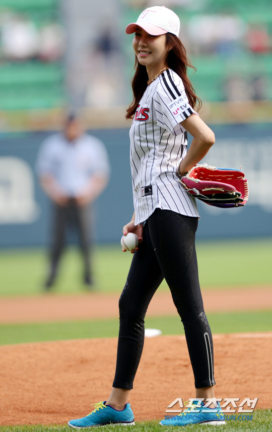 이날 한은정은 분홍색 모자에 LG 트윈스의 유니폼을 입고 그라운드에 올랐다. 특히 초밀착 블랙 레깅스를 입어 S라인 몸매를 그대로 드러내 눈길을 끌었다.