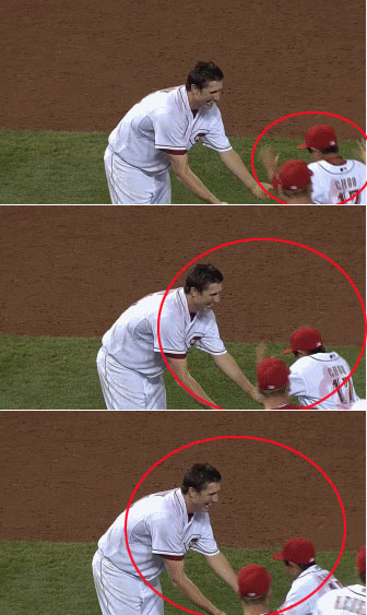 올해 첫 메이저리그 노히트를 기록한 호머 베일리가 가장 먼저 맞은 이는 동료 추신수의 아들이었다.