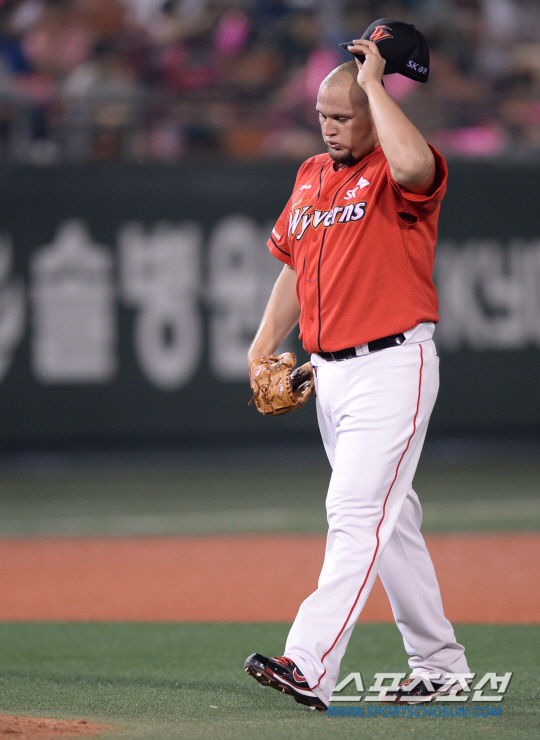 2회에도 선두 정현석을 볼넷으로 내보낸 뒤 폭투를 범했고, 송광민에게 우중간 안타를 허용해 무사 1,3루 상황에서 이준수에게 좌익수 희생플라이를 내주며 추가로 1실점했다. 이어 고동진은 땅볼로 잘 잡았지만, 이학준에게 한복판 높은 직구를 던지다 좌월 투런포를 헌납했다. 결국 SK는 3회말 레이예스를 백인식으로 교체했다.