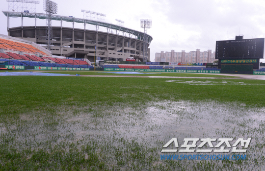 7일 오후 광주 무등야구장에서 예정 되었던 2013 프로야구 KIA와 롯데의 경기가 우천으로 취소되었다. 사진은 비에 젖은 광주 무등야구장 광주=김경민 기자 kyungmin@sportschosun.com