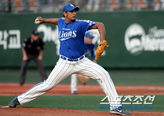 공동선두를 질주중인 넥센과 삼성이 주중 3연전을 벌인다. 4일 목동구장에서 열린 2013 프로야구 넥센과 삼성의 경기에서 삼성 선발투수 로드리게스가 힘차게 공을 던지고 있다. 목동=허상욱 기자 wook@sportschosun.com/2013.06.04/ |