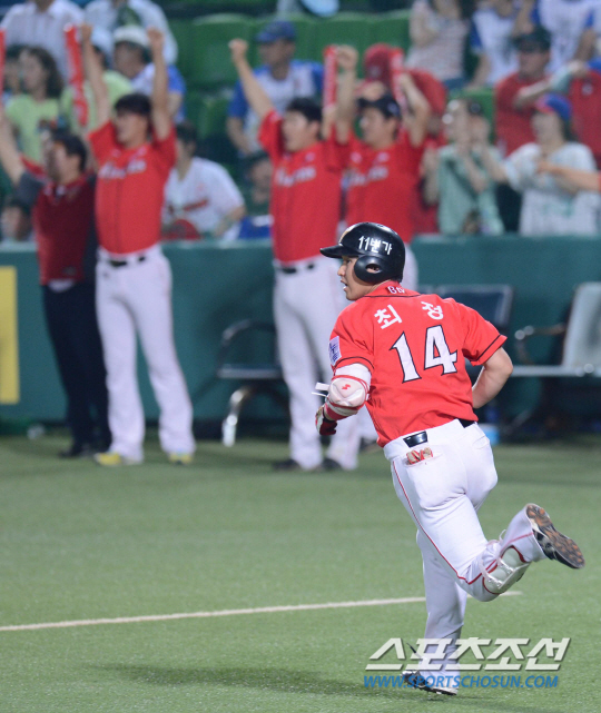 삼성 선발 배영수를 상대로 볼넷 1개를 얻고 삼진 1개를 기록하며 2타수 무안타를 기록한 최 정은 동점 찬스가 오자 힘차게 방망이를 돌렸다. 볼카운트 1B에서 2구째 안지만의 131㎞ 슬라이더가 가운데로 몰리자 기다렸다는 듯 퍼올렸고, 타구는 좌측 담장을 넘어갔다.