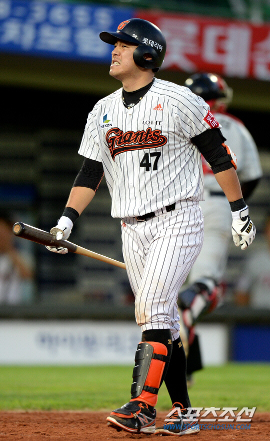 16일 부산 LG전을 앞두고 훈련에 한창이던 강민호. 잠시 휴식을 취하기 위해 털썩 주저 앉더니 한숨을 푹 내쉰다. 좀처럼 볼 수 없는 모습이었다. 그러면서 꺼내는 말이 "나만 잘하면 되는데…"였다. 올시즌 좀처럼 찾지 못하고 있는 타격감 때문이었다. 국내에서 둘째 가라면 서러울 공격형 포수인 강민호지만 올시즌 성적은 그의 이름값에 걸맞지 않는다. 16일 경기까지 타율 2할4푼3리 5홈런에 그치고있다. 특히 최근 타격감은 더욱 좋지 않다. 지난 주말 창원에서 열린 NC와의 3연전 강민호의 부진에 팀은 스윕을 당하고 말았다. 3경기 9타수 무안타에 삼진만 5개를 당했다. 16일 부산 LG전에서도 볼넷 2개를 얻어내는 등 끝까지 출루를 위해 애썼지만 안타를 때려내지 못하고 삼진만 2개를 추가했다.