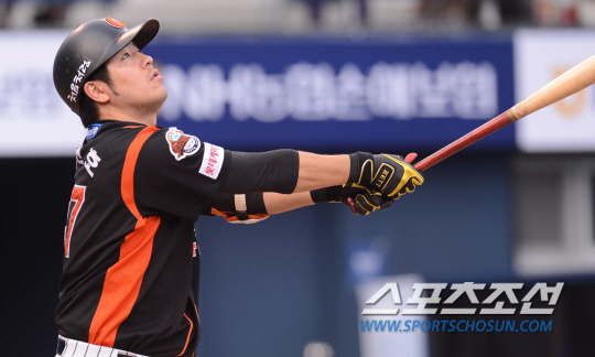 NC 다이노스와 롯데 자이언츠의 2013프로야구 경기가 13일 마산종합운동장 야구장에서 열렸다. 롯데 1회초 1사 1,3루에서 강민호가 1타점 희생플라이를 치고 있다. NC 마산=최문영 기자 deer@sportschosun.com