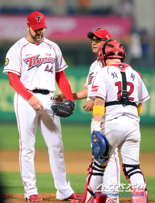 4연승을 기록중인 KIA가 13일 광주무등구장에서 NC와 주중 3연전 마지막 경기를 펼쳤다. KIA 앤서니가 9회 마운드에 올랐으나 동점을 허용하며 송은범에게 마운드를 넘겼다. 허탈한 표정으로 교체를 기다리고 있는 앤서니. 광주=송정헌 기자 songs@sportschosun.com/2013.6.13 |
