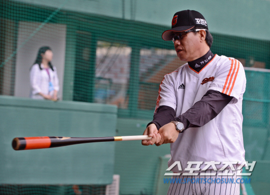 3일 오후 부산 사직야구장에서 2013 프로야구 삼성과 롯데의 경기가 열렸다. 시합 전 롯데 김시진 감독이 방망이를 휘두르며 몸을 풀고 있다. 부산=김경민 기자 kyungmin@sportschosun.com / 2013.07.03. |