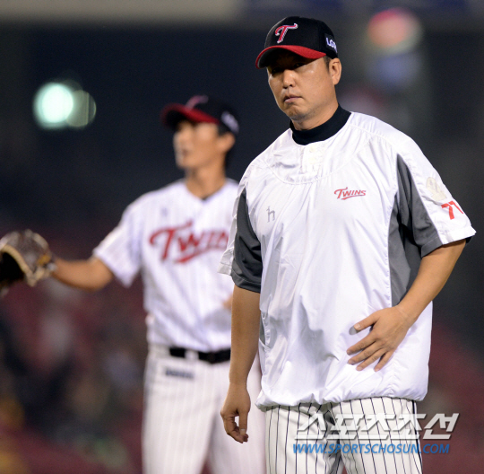 2013 프로야구 LG와 KIA의 후반기 첫 경기가 23일 잠실 야구장에서 펼쳐 졌다. 최근 신장에 있는 종양 제거 수술을 받은 차명석 코치가 7회 마운드를 이상열로 교체하고 덕아웃으로 향하고 있다. 잠실=조병관기자 rainmaker@sportschosun.com/2013.07.23/