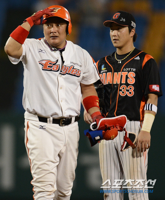 한화가 후반기 첫 두 경기에서 롯데에 1점차 패배를 당했다. 24일 경기에서는 연장 12회 끝에 5대6으로 패해 아쉬움이 크게 남았다. 12회말 1사 1,2루서 4번타자 김태균이 타석에 들어섰다. 상대투수 김승회는 연속해서 볼 3개를 던져 볼카운트는 3B이 됐다. 김승회가 4구째 몸쪽으로 높은 공을 던졌다. 그냥 기다렸다면 스트레이트 볼넷으로 걸어나가 1사 만루가 되는 상황. 이후 이대수나 송광민 타석에서 동점 내지는 역전을 기대할 수도 있었다. 하지만 김태균은 4구째 배트를 휘둘러 평범한 좌익수플라이로 물러났다. 잔뜩 힘이 들어간 상태에서 몸쪽 높은 공에 타격 밸런스가 제대로 이뤄지지 않았다. 김태균은 타격을 한 뒤 고개를 숙이며 방망이를 내던지고 1루로 달려나갔다. 물론 김승회의 공이 스트라이크존에서 형성됐다면 좋은 타구가 나왔을 수도 있다.