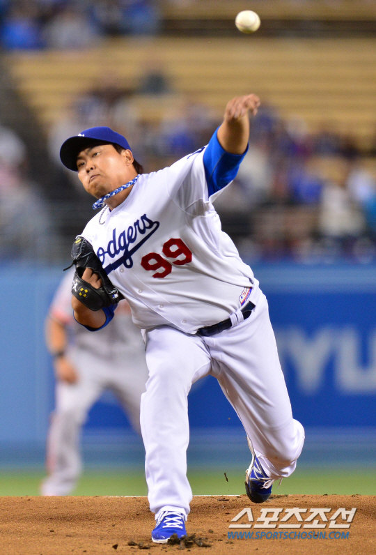 이날 체인지업의 위력을 배가시킨 건 역시 직구였다. 류현진은 최고 95마일(약 153㎞)짜리 묵직한 직구와 체인지업을 효과적으로 섞었다. 탈삼진을 9개나 끌어낸 원동력이었다. 직구로 잡은 탈삼진 3개 모두 스탠딩 삼진. 스트라이크존 꽉 차게 들어간 직구에 상대는 꼼짝 못하고 고개를 숙였다. 구위 문제는 전혀 없었다.