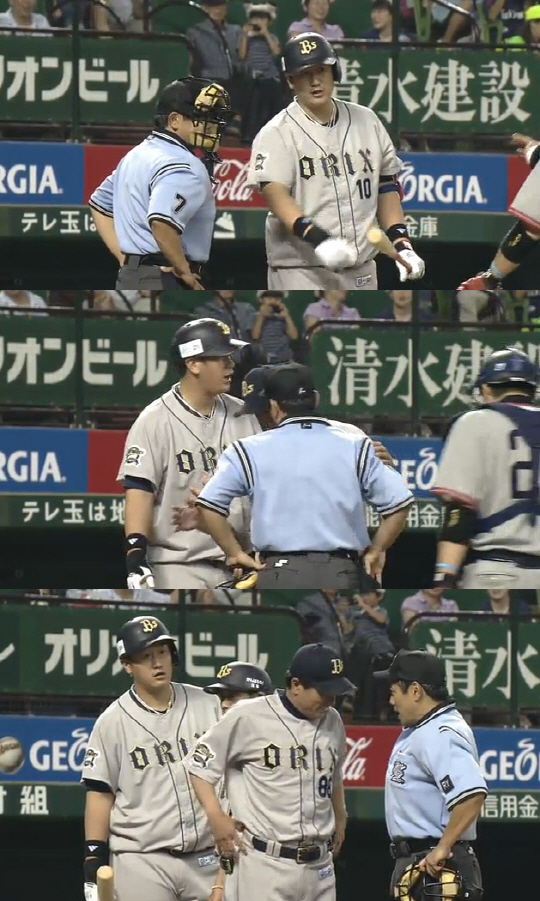 일본프로야구 오릭스 이대호가 한국-일본 통틀어 자신의 프로 경력 13년 만에 첫 퇴장을 당했다
