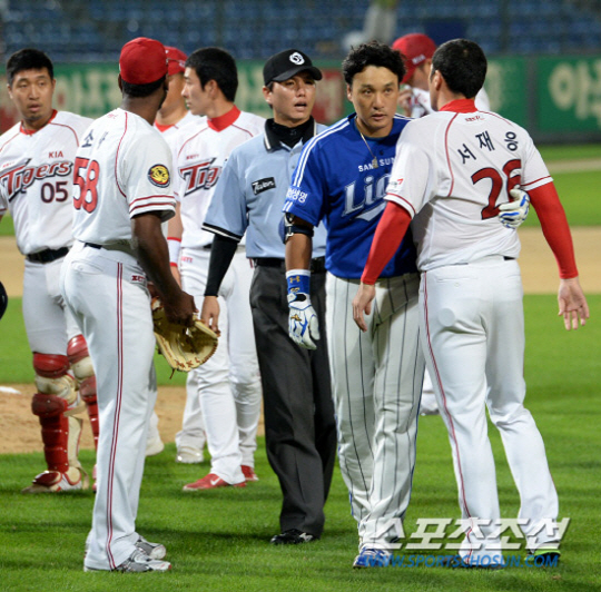 30일 광주구장에서 벌어진 2013 프로야구 KIA-삼성전에서는 벤치 클리어링이 발생했다.