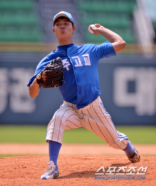 1일 오전 서울 잠실야구장에서 제68회 청룡기 고교야구 선수권대회 청주고와 군산상고의 경기가 열렸다. 청주고 선발투수 황영국이 군산상고 타자들을 상대로 힘차게 볼을 던지고 있다. 잠실=김경민 기자 kyungmin@sportschosun.com / 2013.08.01.