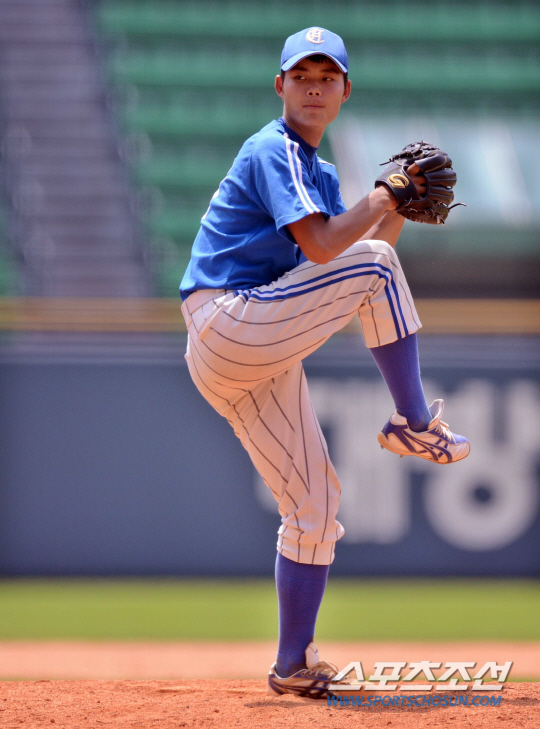 1일 오전 서울 잠실야구장에서 제68회 청룡기 고교야구 선수권대회 청주고와 군산상고의 경기가 열렸다. 청주고 선발투수 황영국이 군산상고 타자들을 상대로 힘차게 볼을 던지고 있다. 잠실=김경민 기자 kyungmin@sportschosun.com / 2013.08.01.