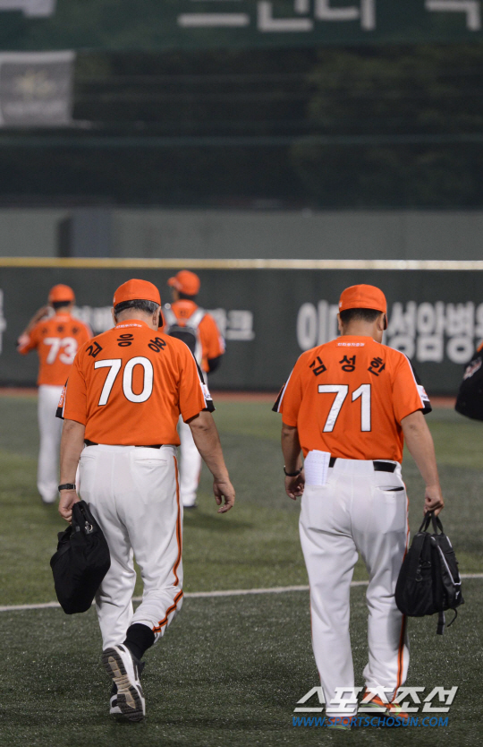 1일 오후 서울 목동야구장에서 2013 프로야구 한화와 넥센의 경기가 열렸다. 2대5로 패한 후 한화 김응용 감독이 김성한 코치와 경기장을 빠져나가고 있다. 목동=김경민 기자 kyungmin@sportschosun.com