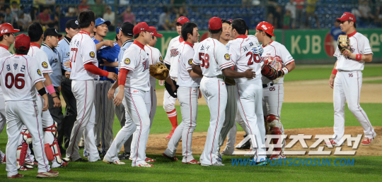 다른 종목과 달리 벤치클리어링같은 선수간 충돌에 대해 관대한 곳이 프로야구다. 그래서 프로야구의 벤치클리어링은 팬들에게 싸움구경 볼거리를 제공하기 위한 '쇼'라고도 불린다. 이번에도 역시 그랬던 모양이다. 벤치클리어링 유발자였던 박한이와 김진우는 이날 언제 그랬느냐는 듯이 깨끗하게 풀었다. 이날 경기를 앞두고 훈련을 마친 박한이는 이용철 KBS 해설위원과 전날 '사건'에 관한 이야기를 하던 중 "김진우한테 겁먹은 게 아니라 제대로 한방 먹이려고 했다"는 농담을 던질 정도로 아무렇지도 않은 표정이었다. 그럴 만한 이유가 있었다. 김진우와 직전에 화해를 했기 때문이다. 박한이는 이날 오후 경기 준비를 위한 팀훈련을 위해 광주구장에 도착해 라커룸으로 들어오던 중 김진우에게 '백허그'를 당했다. 김진우가 박한이를 오기를 기다리고 있다가 살며시 뒤쫓아가 끌어안으며 "형, 어제는 제가 미안했어요"라고 응석을 부리더라는 것. 이 한마디 말에 박한이의 서운했던 감정도 스르르 풀어졌다고. 경기장에서는 치열하게 싸우지만 뒤에서는 뒤끝없이 악수를 하는 동업자 정신이 어김없이 발동한 것이다. 박한이는 "그 큰 덩치가 뒤에서 나를 살포시 끌어안더라"며 그저 웃었다.