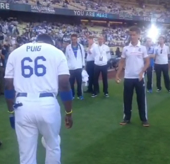 호날두 시구 전 푸이그와 축구