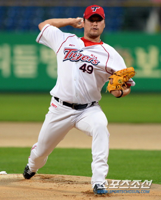 KIA와 삼성의 2013 프로야구 주중 3연전 첫번째 경기가 30일 광주 무등구장에서 열렸다. KIA 선발투수 김진우가 힘차게 볼을 던지고 있다. 김진우는 올시즌 15경기에 등판해 8승 4패 평균자책점 3.71을 기록하고 있다. 광주=허상욱 기자 wook@sportschosun.com/2013.07.30/