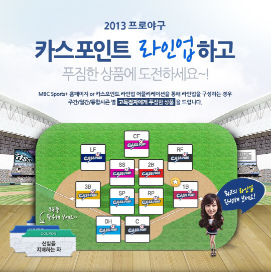 2013시즌 2년째 접어든 카스포인트 라인업은 실제 프로야구 선수 연봉과 선수들의 매 경기 데이터를 바탕으로, 사용자들이 주어진 연봉 내에서 포지션 별로 선수를 영입해 라인업을 구성하면 카스포인트 점수를 획득하게 된다. 선수 별 카스포인트는 경기 중 실시간으로 업데이트 되며 홈페이지 또는 모바일 어플리케이션을 통해 빠르게 확인할 수 있다.