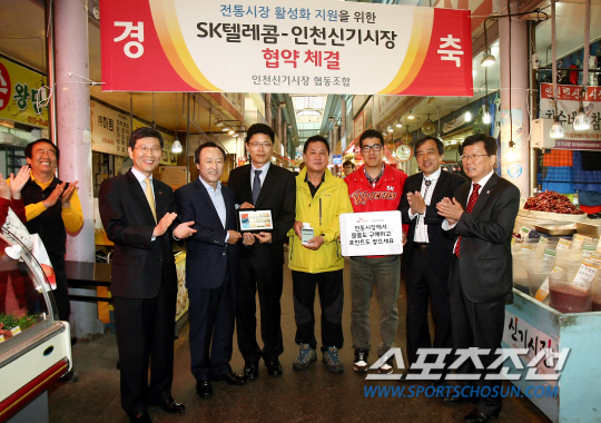 SK텔레콤은 작년 9월 중곡제일시장을 시작으로 ICT솔루션 및 DB마케팅을 통한 '전통시장 활성화 프로젝트'를 진행하고 있다. 인천 신기시장과 SK텔레콤은 지난 5월 20일 '전통시장 활성화 업무협약'을 체결했었고, SK 와이번스는 인천을 대표하는 프로구단으로서 사회적 책임을 다하고자 신기시장 활성화를 위한 다양한 프로모션을 실시하기로 합의했었다. SK와이번스는 정근우를 신기시장 홍보대사로 선정해 활동을 지원했고 신기시장에 홈경기 티켓을 제시하면 1000원 할인혜택 등을 실시하고 있다. 권인하 기자 indyk@sportschosun.com