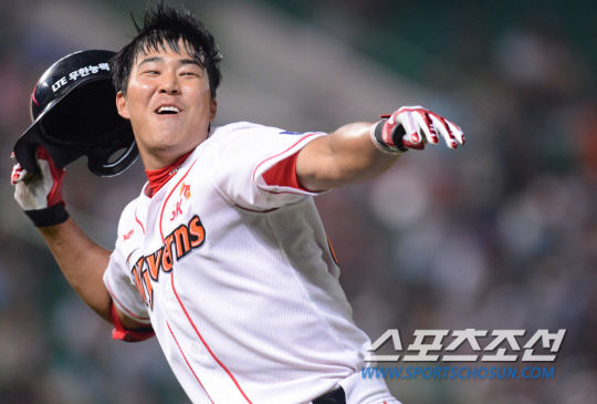 SK 와이번즈와 롯데 자이언츠의 2013 프로야구 경기가 11일 인천 문학야구장에서 열렸다. 3-3 팽팽한 접전이 이어지던 9회말 SK 한동민이 우월 역전 끝내기 홈런을 치고 환호하고있다. 인천=최문영 기자 deer@sportschosun.com /2013.08.11/