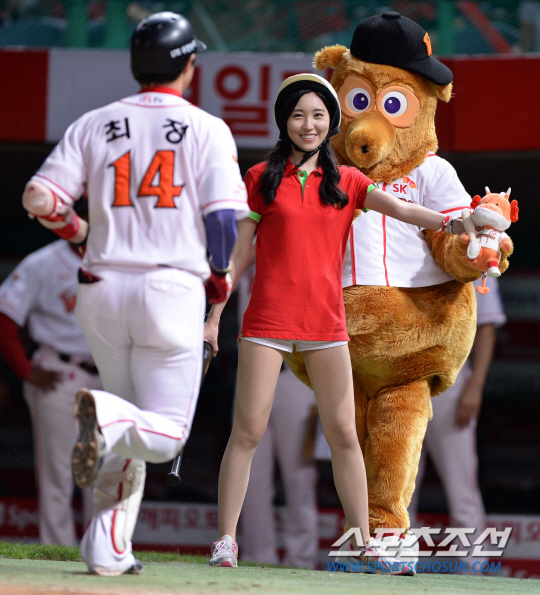 13일 오후 인천 문학야구장에서 2013 프로야구 KIA와 SK의 경기가 열렸다. 4회말 2사서 SK 최정이 중월 솔로홈런을 친 후 배트걸에게 인형을 받아들고 있다. 인천=김경민 기자 kyungmin@sportschosun.com