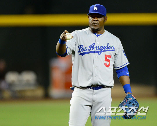 류현진의 '절친'인 후안 유리베. 13일 경기 도중 류현진이 유리베에게 장난을 치다 유리베가 정색하는 모습이 포착면서 엄청난 화제를 모았다. 송정헌 기자 songs@sportschosun.com/2013.4.14