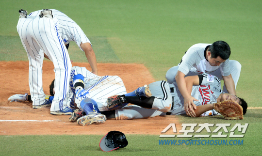 src='https://www.sportschosun.com/article/html/2013/08/14/2013081401001180400087622.jpg' alt='[포토] 충돌한 조동찬, '큰 부상은 안되는데...'" width='540" /> |