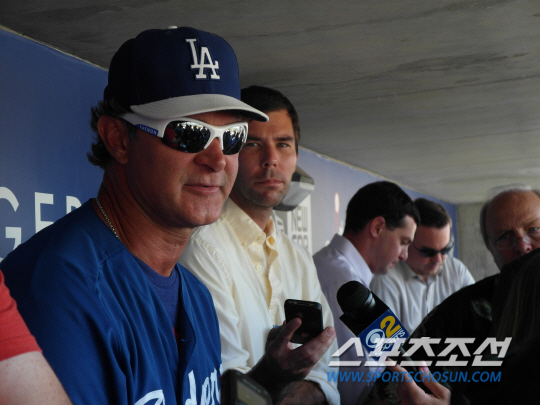 14일(한국시각) 뉴욕 메츠와의 홈경기에 앞서 취재진과 인터뷰중인 LA 다저스의 돈 매팅리 감독.