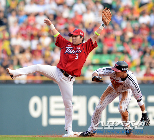 2013 프로야구 LG와 KIA의 주중 3연전 마지막날 경기가 25일 잠실구장에서 열렸다. 1회말 1사 1루 LG 이진영의 내야땅볼때 1루주자 박용택이 2루 포스아웃되고 있다. KIA 유격수는 김선빈. 잠실=허상욱 기자 wook@sportschosun.com/2013.07.25/ |