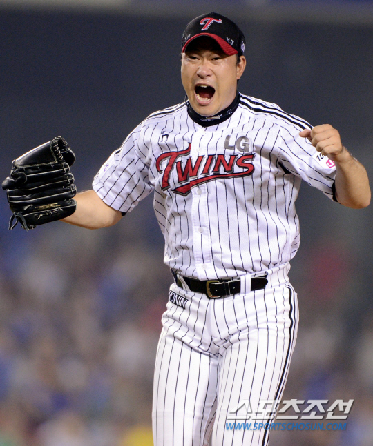 선두 다툼을 하고 있는 삼성과 LG가 위닝시리즈를 놓고 4일 잠실에서 다시 만났다. 8회 7대6으로 쫓기며 1,3루 위기에 등판한 LG 수호신 봉중근이 삼성 박한이를 삼진으로 잡고 포효하고 있다. 잠실=조병관기자 rainmaker@sportschosun.com/2013.08.04/