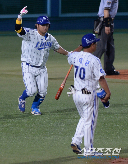 박석민은 21일 대구 SK전서 2회와 3회 연달아 좌측담장을 넘기는 홈런을 터뜨렸다.