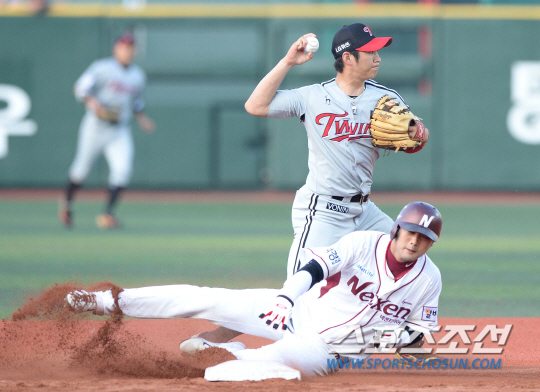 7일 목동야구장에서 프로야구 LG와 넥센의 주말 3연전 두 번째 경기가 열렸다. 넥센 3회말 1사 1루에서 허도환의 내야 땅볼 타구 때 1루주자 서동욱이 2루에서 포스아웃을 당하고 있다. 목동=송정헌 기자 songs@sportschosun.com/2013.7.6 |